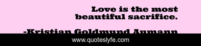 "Kristian Goldmund Aumann Quotes." Quoteslyfe.com, 2025. Sat. 06 Dec. 2025. <https://www.quoteslyfe.com/quote/Love-is-the-most-beautiful-sacrifice-209748>.