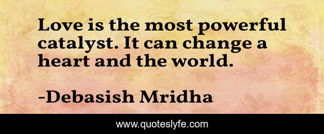 This page presents the quote "Love is the most powerful catalyst. It can change a heart and the world.". Author of this quote is Debasish Mridha. This quote is about heart, philosophy, love, mridha, debasish, debasish-mridha, powerful-catalyst, change, catalyst,.