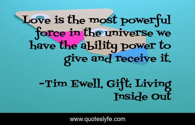 This page presents the quote "Love is the most powerful force in the universe we have the ability power to give and receive it.". Author of this quote is Tim Ewell, Gift: Living Inside Out. This quote is about life, love, god, survival, resilience, affection,.