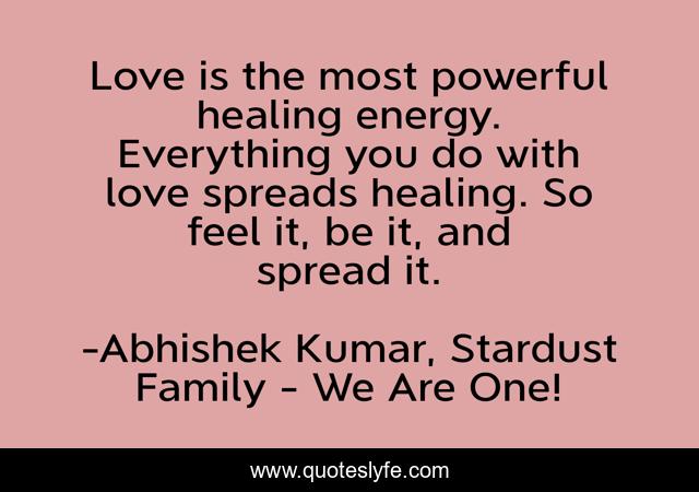 "Abhishek Kumar, Stardust Family - We Are One! Quotes." Quoteslyfe.com, 2025. Tue. 09 Dec. 2025. <https://www.quoteslyfe.com/quote/Love-is-the-most-powerful-healing-energy-148113>.