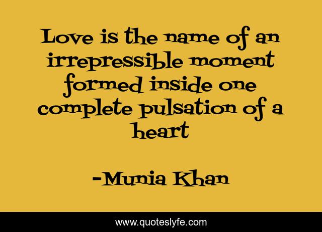 This page presents the quote "Love is the name of an irrepressible moment formed inside one complete pulsation of a heart". Author of this quote is Munia Khan. This quote is about heart, lovers, love, complete, heartbeats, inside, pulse, valentine, romance,.