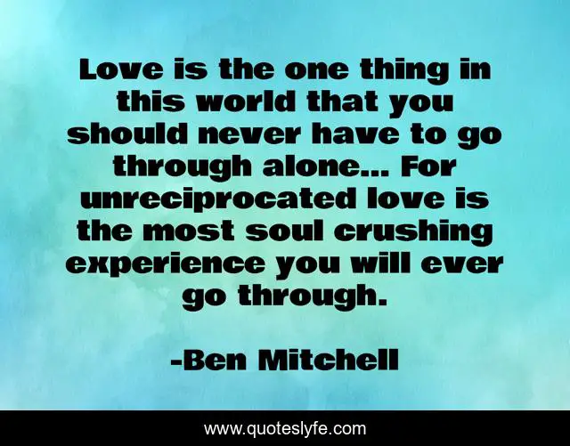 This page presents the quote "Love is the one thing in this world that you should never have to go through alone… For unreciprocated love is the most soul crushing experience you will ever go through.". Author of this quote is Ben Mitchell. This quote is about life-lessons, love, unreciprocated-love, unrequited-love, affection,.