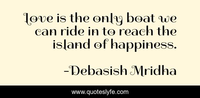 This page presents the quote "Love is the only boat we can ride in to reach the island of happiness.". Author of this quote is Debasish Mridha. This quote is about love-is-a-boat, debasish, love, mridha, reach-the-island-of-happiness, philosophy, debasish-mridha, happiness, affection,.