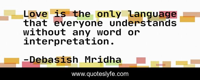 This page presents the quote "Love is the only language that everyone understands without any word or interpretation.". Author of this quote is Debasish Mridha. This quote is about life, love, knowledge, inspirational, intelligence, philosophy, wisdom, quotes, affection,.