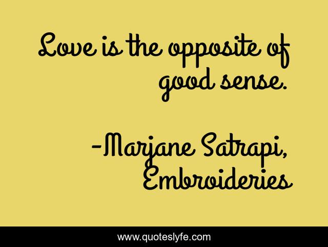 "Marjane Satrapi, Embroideries Quotes." Quoteslyfe.com, 2025. Sat. 06 Dec. 2025. <https://www.quoteslyfe.com/quote/Love-is-the-opposite-of-good-sense-81373>.