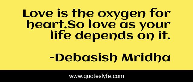 This page presents the quote "Love is the oxygen for heart.So love as your life depends on it.". Author of this quote is Debasish Mridha. This quote is about life, love, knowledge, inspirational, intelligence, philosophy, wisdom, quotes, affection,.
