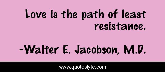 "Walter E. Jacobson, M.D. Quotes." Quoteslyfe.com, 2025. Sat. 06 Dec. 2025. <https://www.quoteslyfe.com/quote/Love-is-the-path-of-least-resistance-77930>.