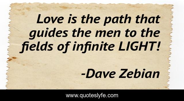 This page presents the quote "Love is the path that guides the men to the fields of infinite LIGHT!". Author of this quote is Dave Zebian. This quote is about intuition, love, consciousness, light, eternal, soul, amor, instinct, amour,.