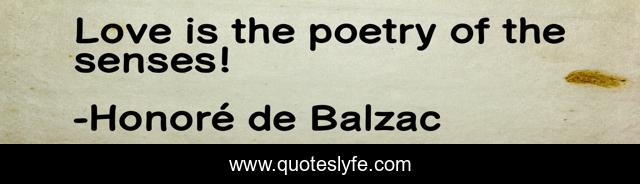 This page presents the quote "Love is the poetry of the senses!". Author of this quote is Honoré de Balzac. This quote is about quote, poetry,.