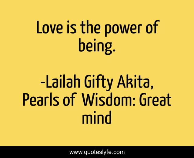 "Lailah Gifty Akita, Pearls of Wisdom: Great mind Quotes." Quoteslyfe.com, 2025. Tue. 09 Dec. 2025. <https://www.quoteslyfe.com/quote/Love-is-the-power-of-being-169153>.