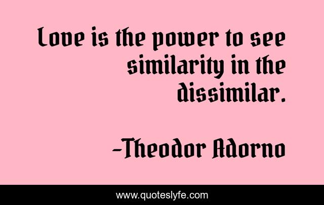 This page presents the quote "Love is the power to see similarity in the dissimilar.". Author of this quote is Theodor Adorno. This quote is about see, power, love is,.