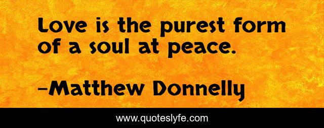 This page presents the quote "Love is the purest form of a soul at peace.". Author of this quote is Matthew Donnelly. This quote is about love, peace, soul, peace-of-mind, spirituality, affection,.