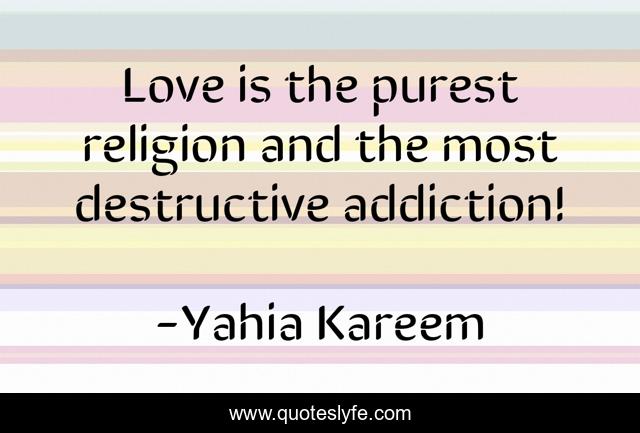 This page presents the quote "Love is the purest religion and the most destructive addiction!". Author of this quote is Yahia Kareem. This quote is about love, religion, addict, pure, addiction, affection,.