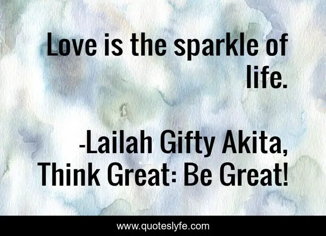 "Lailah Gifty Akita, Think Great: Be Great! Quotes." Quoteslyfe.com, 2025. Tue. 09 Dec. 2025. <https://www.quoteslyfe.com/quote/Love-is-the-sparkle-of-life-97242>.