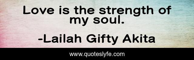 This page presents the quote "Love is the strength of my soul.". Author of this quote is Lailah Gifty Akita. This quote is about strength, love, soul, affection,.