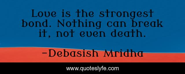 This page presents the quote "Love is the strongest bond. Nothing can break it, not even death.". Author of this quote is Debasish Mridha. This quote is about death, love, love-stronger-than-death, mrihda, debasish, debasish-mridha, philosophy, break, stongest,.