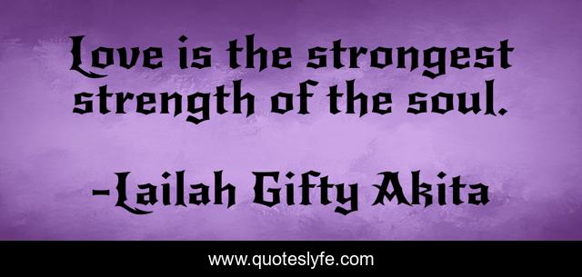 This page presents the quote "Love is the strongest strength of the soul.". Author of this quote is Lailah Gifty Akita. This quote is about confidence, strength, love, positive, motivational, wisdom-of-lailah-gifty-akita, optimistic, self-help, affection,.