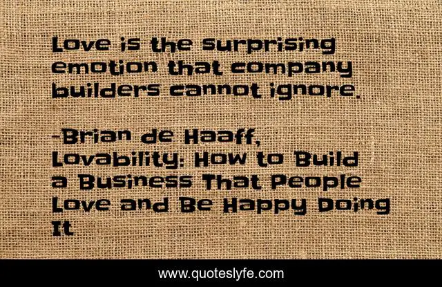 "Brian de Haaff, Lovability: How to Build a Business That People Love and Be Happy Doing It Quotes." Quoteslyfe.com, 2025. Tue. 09 Dec. 2025. <https://www.quoteslyfe.com/quote/Love-is-the-surprising-emotion-that-company-64379>.
