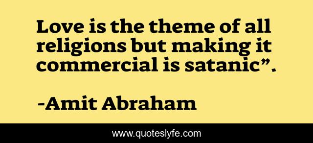 This page presents the quote "Love is the theme of all religions but making it commercial is satanic”.". Author of this quote is Amit Abraham. This quote is about love, satanic, commercial, religion, theme, affection,.