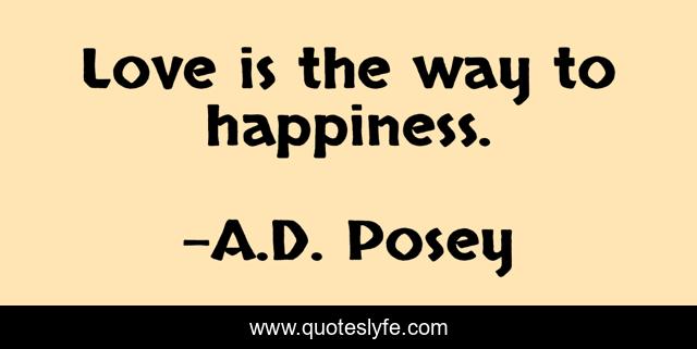 This page presents the quote "Love is the way to happiness.". Author of this quote is A.D. Posey. This quote is about love, inspirational, storytelling, storytellers, writing, write, writers, ad-posey, happiness,.