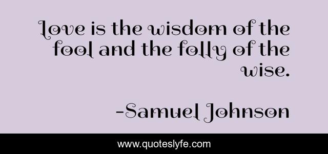 "Samuel Johnson Quotes." Quoteslyfe.com, 2025. Mon. 08 Dec. 2025. <https://www.quoteslyfe.com/quote/Love-is-the-wisdom-of-the-fool-12690>.