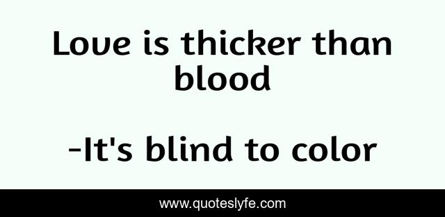 "It's blind to color Quotes." Quoteslyfe.com, 2025. Sun. 07 Dec. 2025. <https://www.quoteslyfe.com/quote/Love-is-thicker-than-blood-48399>.