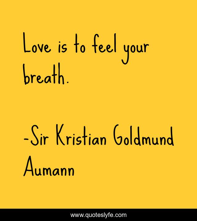 "Sir Kristian Goldmund Aumann Quotes." Quoteslyfe.com, 2025. Sat. 06 Dec. 2025. <https://www.quoteslyfe.com/quote/Love-is-to-feel-your-breath-209648>.