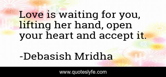 This page presents the quote "Love is waiting for you, lifting her hand, open your heart and accept it.". Author of this quote is Debasish Mridha. This quote is about life, love, knowledge, inspirational, intelligence, philosophy, wisdom, quotes, affection,.