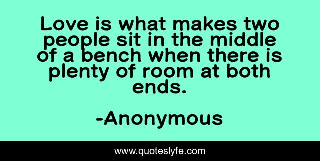 This page presents the quote "Love is what makes two people sit in the middle of a bench when there is plenty of room at both ends.". Author of this quote is Anonymous. .