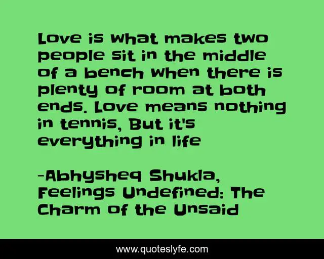 "Abhysheq Shukla, Feelings Undefined: The Charm of the Unsaid Quotes." Quoteslyfe.com, 2025. Sat. 06 Dec. 2025. <https://www.quoteslyfe.com/quote/Love-is-what-makes-two-people-sit-34113>.