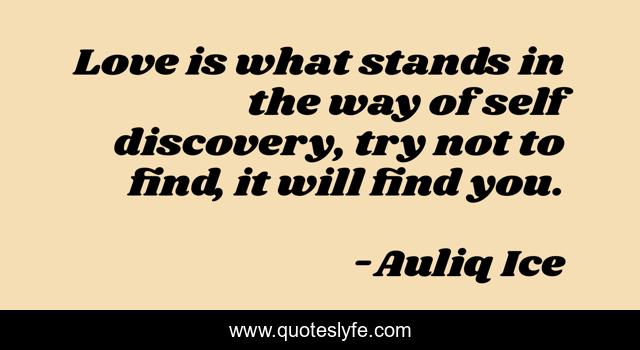 This page presents the quote "Love is what stands in the way of self discovery, try not to find, it will find you.". Author of this quote is Auliq Ice. This quote is about falling-in-love, nature, nature-of-man, beautiful-girls, falling-into-you, beautiful-people,.