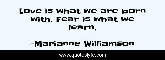 This page presents the quote "Love is what we are born with. Fear is what we learn.". Author of this quote is Marianne Williamson. This quote is about born, fear, love, learning, affection,.
