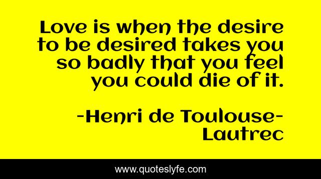 "Henri de Toulouse-Lautrec Quotes." Quoteslyfe.com, 2025. Sun. 07 Dec. 2025. <https://www.quoteslyfe.com/quote/Love-is-when-the-desire-to-be-300052>.