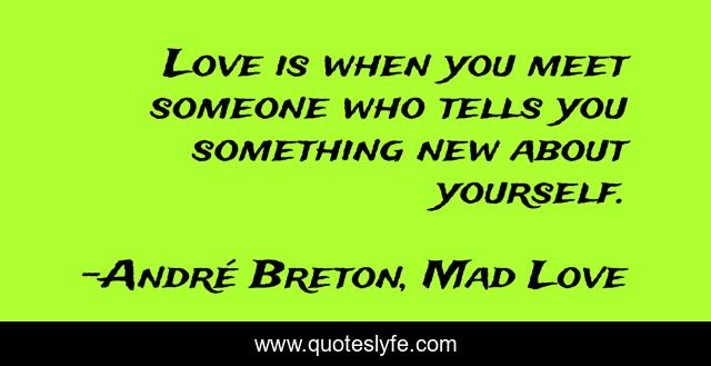"André Breton, Mad Love Quotes." Quoteslyfe.com, 2025. Tue. 09 Dec. 2025. <https://www.quoteslyfe.com/quote/Love-is-when-you-meet-someone-who-250198>.
