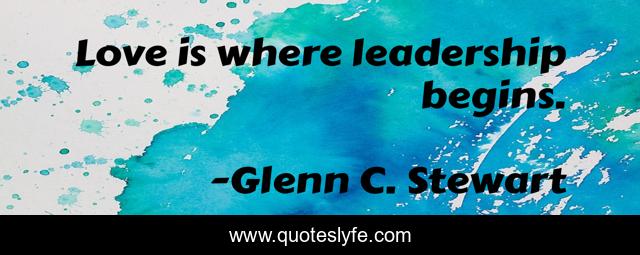 This page presents the quote "Love is where leadership begins.". Author of this quote is Glenn C. Stewart. This quote is about leadership, leadership-styles, leadership-development,.