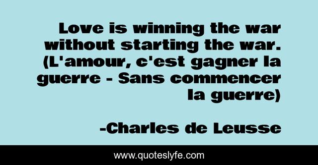 This page presents the quote "Love is winning the war without starting the war. (L'amour, c'est gagner la guerre - Sans commencer la guerre)". Author of this quote is Charles de Leusse. This quote is about love, commencer, win, guerre, start, amour, gagner, war, affection,.