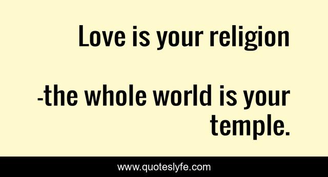 This page presents the quote "Love is your religion". Author of this quote is the whole world is your temple.. .