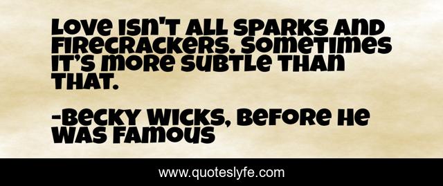 This page presents the quote "Love isn't all sparks and firecrackers. Sometimes it’s more subtle than that.". Author of this quote is Becky Wicks, Before He Was Famous. This quote is about new-adult, romance, before-he-was-famous, rock-star, fame,.