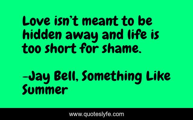 This page presents the quote "Love isn’t meant to be hidden away and life is too short for shame.". Author of this quote is Jay Bell, Something Like Summer. .