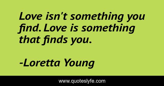 This page presents the quote "Love isn't something you find. Love is something that finds you.". Author of this quote is Loretta Young. This quote is about find, love is,.