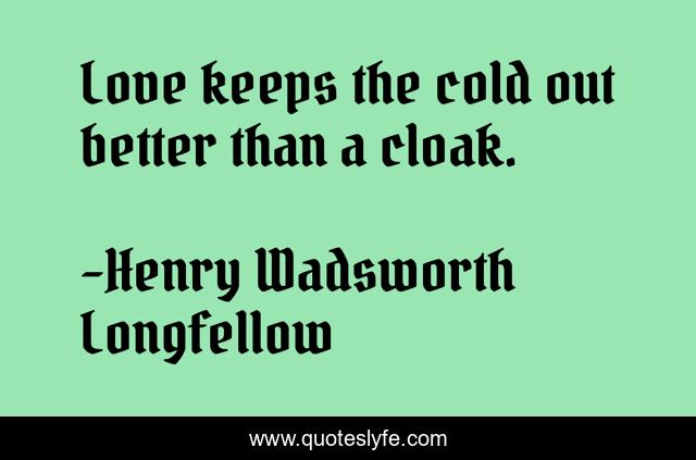 "Henry Wadsworth Longfellow Quotes." Quoteslyfe.com, 2025. Sat. 06 Dec. 2025. <https://www.quoteslyfe.com/quote/Love-keeps-the-cold-out-better-than-269963>.