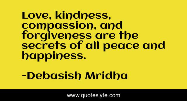 This page presents the quote "Love, kindness, compassion, and forgiveness are the secrets of all peace and happiness.". Author of this quote is Debasish Mridha. This quote is about peace, love, compassion, philosophy, debasish-mridha, quotes, happiness, inspirational, enthusiasm,.