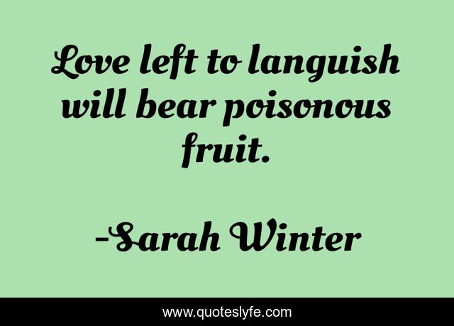 This page presents the quote "Love left to languish will bear poisonous fruit.". Author of this quote is Sarah Winter. This quote is about romance, loss, love, affection,.