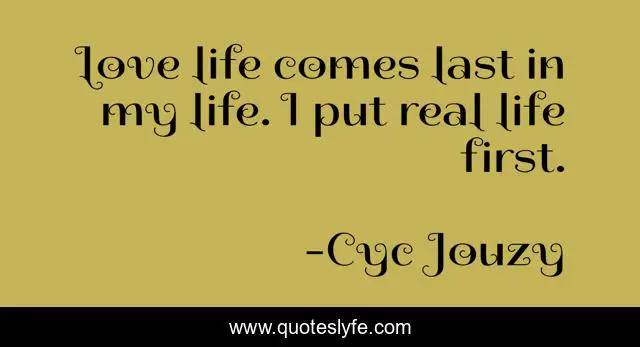This page presents the quote "Love life comes last in my life. I put real life first.". Author of this quote is Cyc Jouzy. This quote is about real, relationships, life, love, plans, love-life, lust, real-life, truth,.