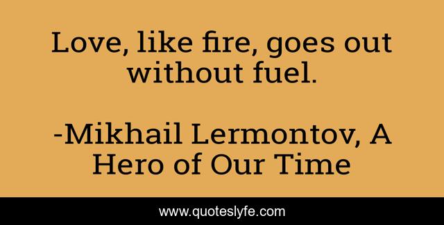 "Mikhail Lermontov, A Hero of Our Time Quotes." Quoteslyfe.com, 2025. Sun. 07 Dec. 2025. <https://www.quoteslyfe.com/quote/Love-like-fire-goes-out-without-fuel-604>.