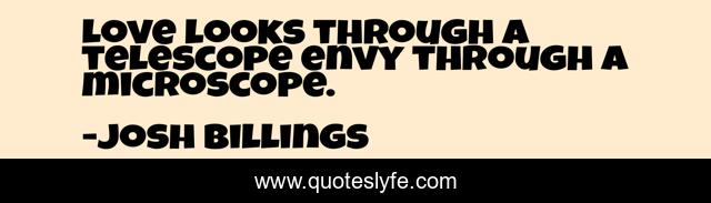 "Josh Billings Quotes." Quoteslyfe.com, 2025. Fri. 05 Dec. 2025. <https://www.quoteslyfe.com/quote/Love-looks-through-a-telescope-envy-through-269771>.