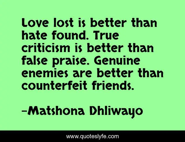 Love lost is better than hate found. True criticism is better than false praise. Genuine enemies are better than counterfeit friends.