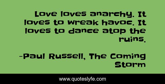 "Paul Russell, The Coming Storm Quotes." Quoteslyfe.com, 2025. Sat. 06 Dec. 2025. <https://www.quoteslyfe.com/quote/Love-loves-anarchy-It-loves-to-wreak-231082>.