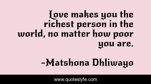"Matshona Dhliwayo Quotes." Quoteslyfe.com, 2025. Tue. 09 Dec. 2025. <https://www.quoteslyfe.com/quote/Love-makes-you-the-richest-person-in-49632>.