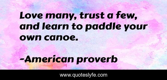 This page presents the quote "Love many, trust a few, and learn to paddle your own canoe.". Author of this quote is American proverb. This quote is about proverbial-wisdom, trust, love, affection,.